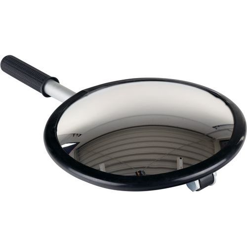 Zrcátka pro kontrolu vozidel v přístupových oblastech nebo pro kontrolu strojů. K dispozici s osvětlením nebo bez něj a s kolečky nebo bez koleček. Jsou vybavené teleskopickým hliníkovým ramenem o délce 40 až 110 cm. Kolečka s měkkým polyuretanovým povrchem a kuličkovými ložisky pro snadné používání. Certifikát TÜV.