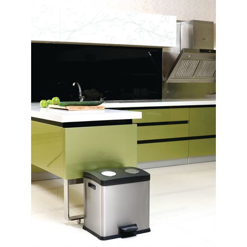 - Matný obdélníkový nášlapný koš z nerezové oceli se 2 plastovými koši.