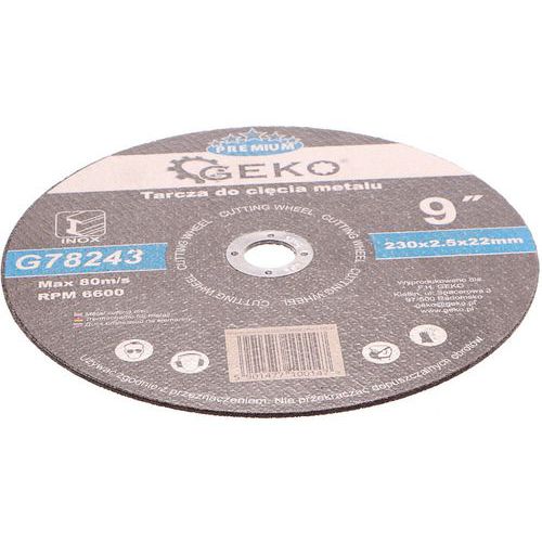 Kvalitní řezný kotouč na kov GEKO s rozměry 230 x 2,5 x 22,23 mm vhodný pro řezání prvků z konstrukční oceli, plechu, trubek a profilů.