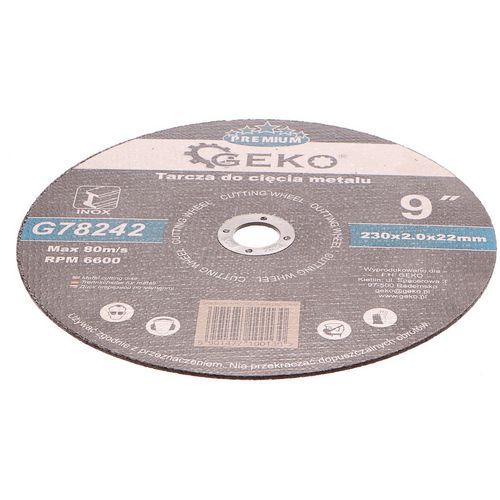 Kvalitní řezný kotouč na kov GEKO s rozměry 230 x 2 x 22,23 mm vhodný pro řezání prvků z konstrukční oceli, plechu, trubek a profilů.