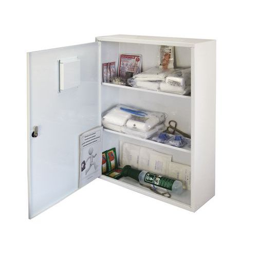 Kovová nástěnná lékárnička, uzamykatelná, 60 x 45 x 16 cm, s náplní VÝROBA