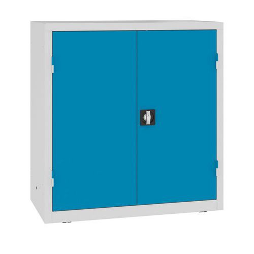 - Nízké kovové skříně se dvěma policemi a zásuvkami vhodné pro profesionální použití ve vnitřních suchých a větraných prostorách.