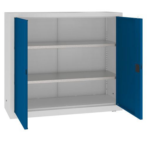 Kovová dílenská skříň, 104 x 120 x 43,5 cm, 2 police, šedá/tm. modrá