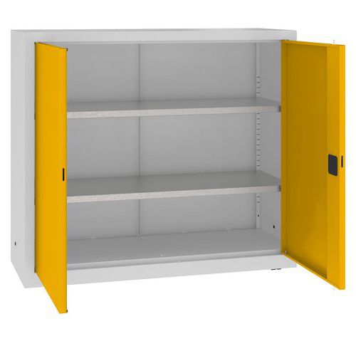 Kovová dílenská skříň, 104 x 120 x 43,5 cm, 2 police, šedá/žlutá