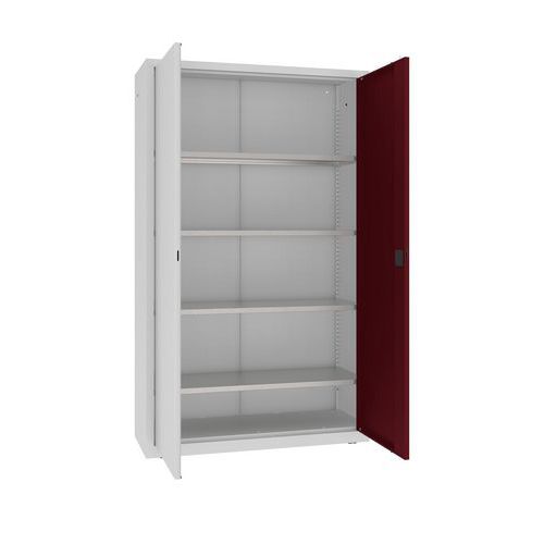 Kovová dílenská skříň, 199 x 120 x 43,5 cm, 4 police, šedá/tm. červená