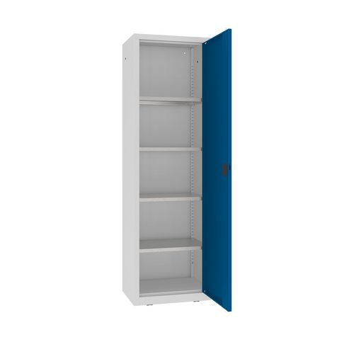Kovová dílenská skříň, 199 x 60 x 43,5 cm, 4 police, šedá/tm. modrá