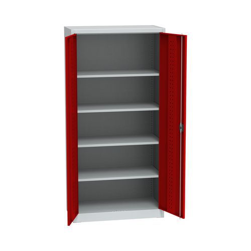 - Svařované dílenské kovové skříně se čtyřmi policemi vhodné do výrobních prostor, autoservisů, laboratoří nebo škol a výcvikových center.