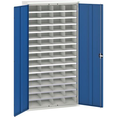 Kovová dílenská skříň Bott Verso s přihrádkami, 200 x 105 x 35 cm, 60 přihrádek, šedá-modrá