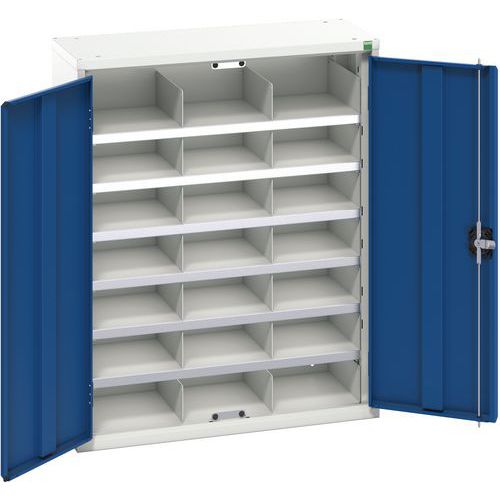Kovová dílenská skříň Bott Verso s přihrádkami, 100 x 80 x 35 cm, 21 přihrádek, šedá-modrá