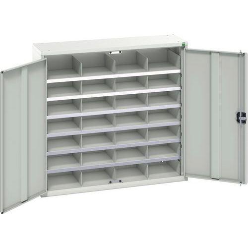 Kovová dílenská skříň Bott Verso s přihrádkami, 100 x 105 x 35 cm, 28 přihrádek, šedá-šedá