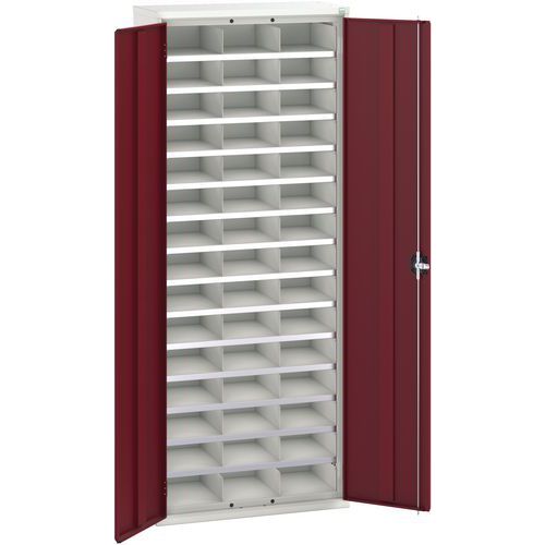 Kovová dílenská skříň Bott Verso s přihrádkami, 200 x 80 x 35 cm, 45 přihrádek, šedá-červená