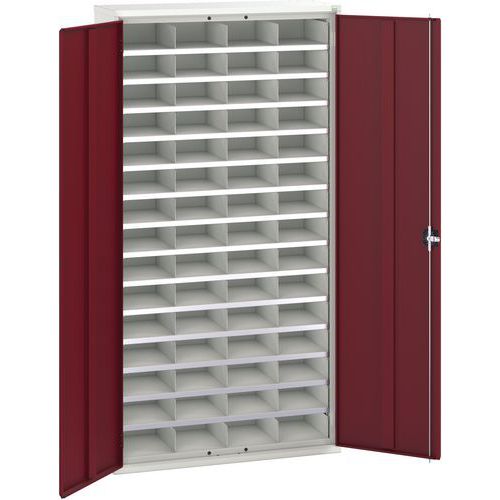 Kovová dílenská skříň Bott Verso s přihrádkami, 200 x 105 x 35 cm, 60 přihrádek, šedá-červená