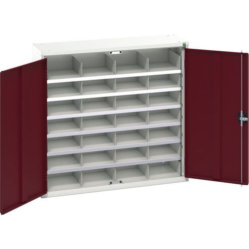 Kovová dílenská skříň Bott Verso s přihrádkami, 100 x 105 x 35 cm, 28 přihrádek, šedá-červená