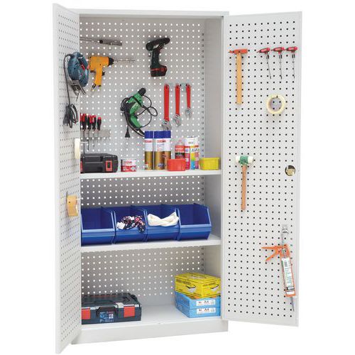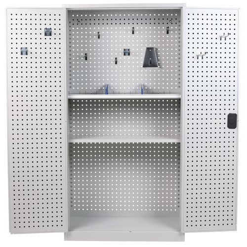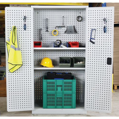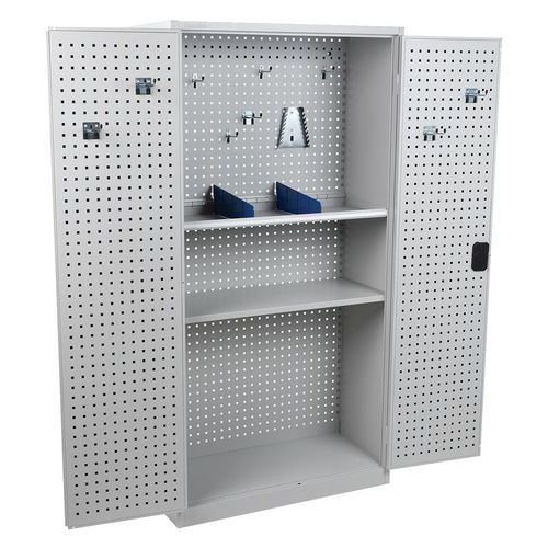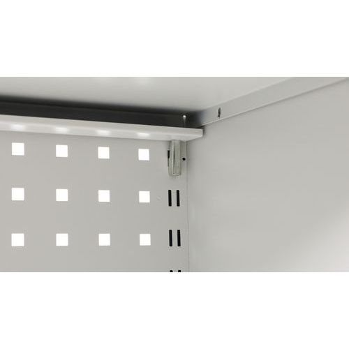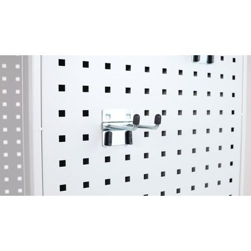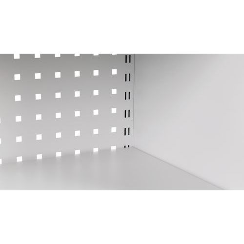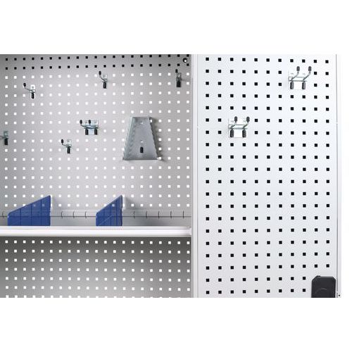 - Zadní část kovových skříní i dveře jsou opatřeny perforovanými panely pro uchycení držáků nářadí a boxů.