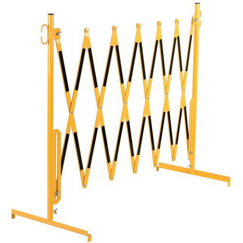 - Skládací ocelové zábrany s nožičkami na 2 stranách pro dočasné uzavření nebezpečného prostoru.