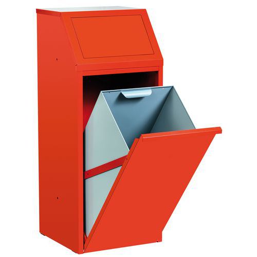 Kovový odpadkový koš na tříděný odpad, objem 70 l, červený