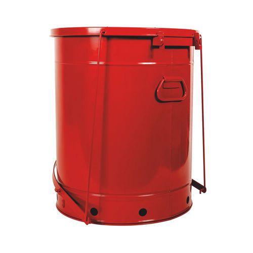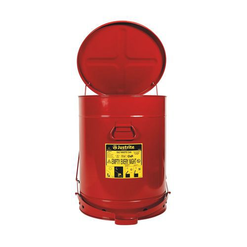 Bezpečnostní odpadkové koše pro mastné, hořlavé a životnímu prostředí nebezpečné látky. S nášlapným mechanismem a automatickým zavíráním. Kulatá konstrukce a vyvýšené dno umožňují cirkulaci vzduchu kolem nádoby, čímž se rozptyluje teplo a snižuje se hromadění vlhkosti a rezivění. Rukojeť pro snadné přenášení. Výstražný štítek s piktogramy.