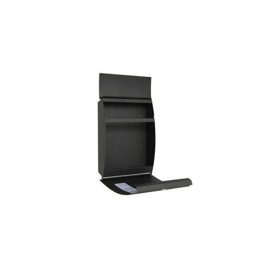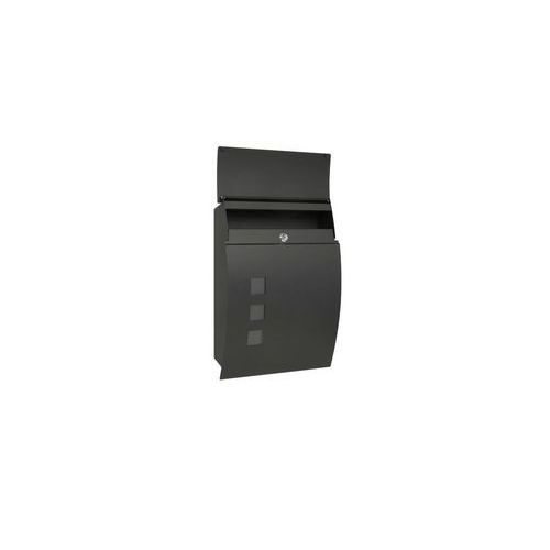 - Kovová poštovní schránka s okénky z matného plexiskla umožňující částečný průhled do jejího vnitřku.