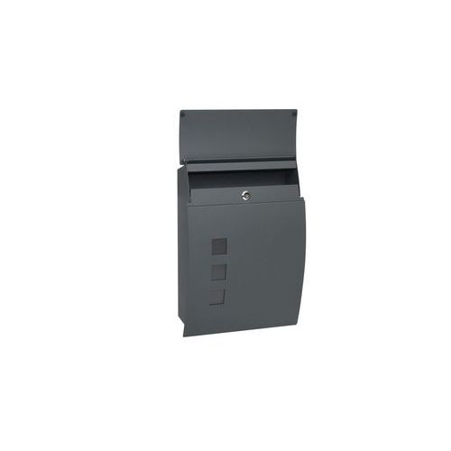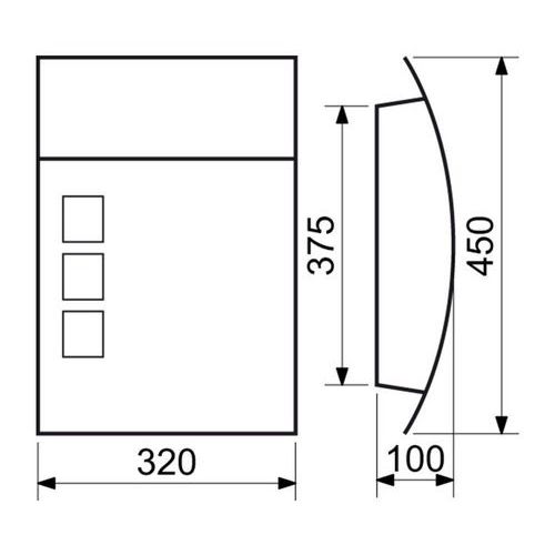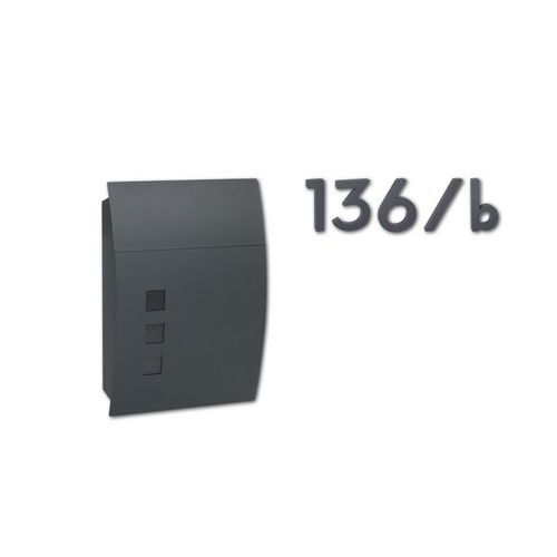 - Kovová poštovní schránka s okénky z matného plexiskla umožňující částečný průhled do jejího vnitřku.