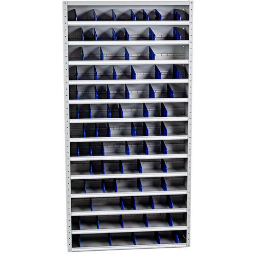 Kovové regály s dvanácti policemi jsou ideálním řešením pro ukládání drobného zboží ve skladech či dílnách.