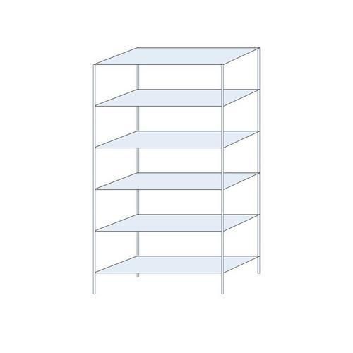 - Univerzální kovové regály z pozinkovaného plechu s 5 až 7 policemi.