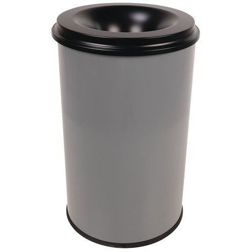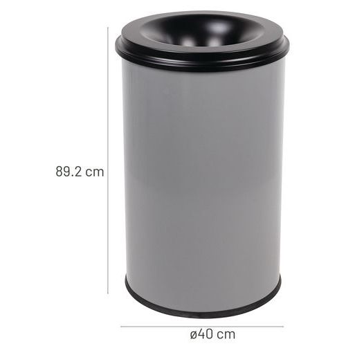 Kovový samozhášecí odpadkový koš Manutan Expert Safe, objem 110 l, šedý/černý