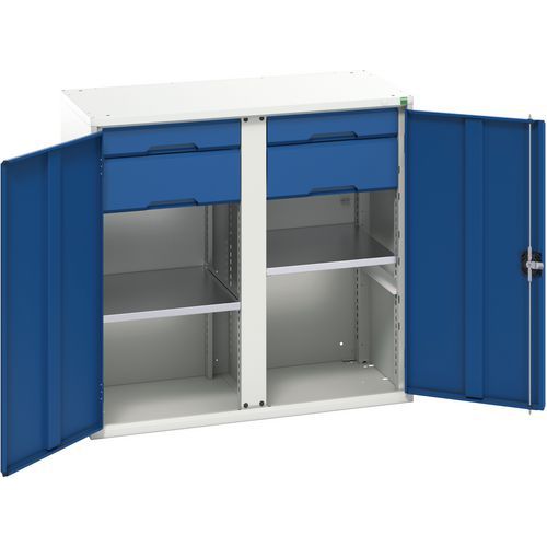 Kovová skříň pro údržbu Bott Verso, 100 x 105 x 55 cm, 2 police, 4 zásuvky, šedá-modrá