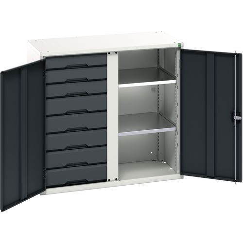 Kovová skříň pro údržbu Bott Verso, 100 x 105 x 55 cm, 2 police, 8 zásuvek, šedá-antracit