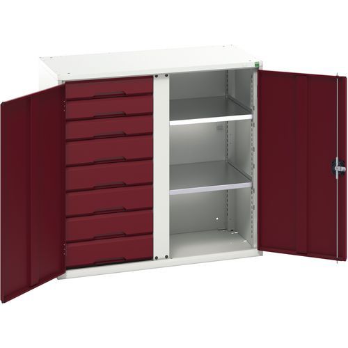 Kovová skříň pro údržbu Bott Verso, 100 x 105 x 55 cm, 2 police, 8 zásuvek, šedá-červená