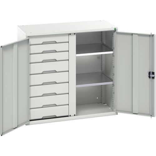 Kovová skříň pro údržbu Bott Verso, 100 x 105 x 55 cm, 2 police, 8 zásuvek, šedá-šedá
