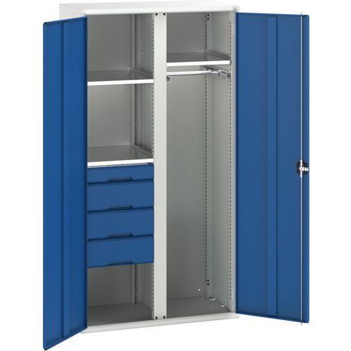 Kovová skříň pro údržbu Bott Verso, 200 x 105 x 55 cm, 3 police, 4 zásuvky, šedá-modrá Kovová skříň pro údržbu Bott Verso, 200 x 105 x 55 cm, 3 police, 4 zásuvky, šedá-modrá