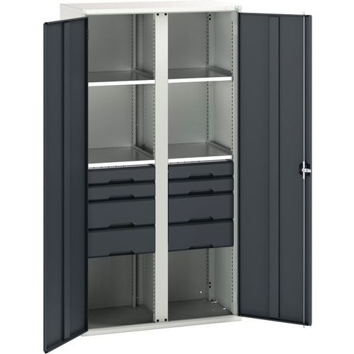 Kovová skříň pro údržbu Bott Verso, 200 x 105 x 55 cm, 4 police, 8 zásuvky, šedá-antracit Kovová skříň pro údržbu Bott Verso, 200 x 105 x 55 cm, 4 police, 8 zásuvky, šedá-antracit