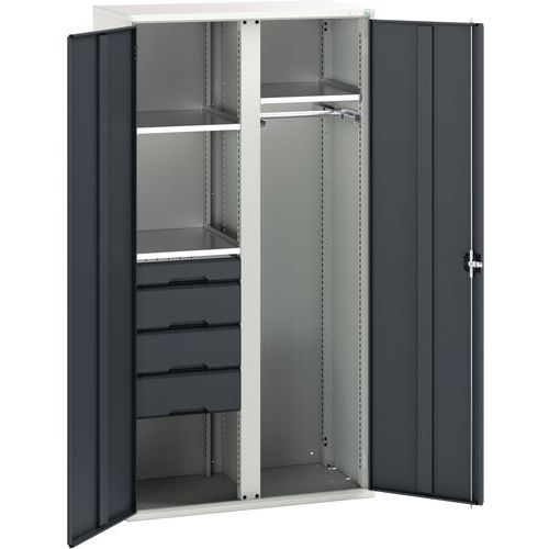 Kovová skříň pro údržbu Bott Verso, 200 x 105 x 55 cm, 3 police, 4 zásuvky, šedá-antracit Kovová skříň pro údržbu Bott Verso, 200 x 105 x 55 cm, 3 police, 4 zásuvky, šedá-antracit