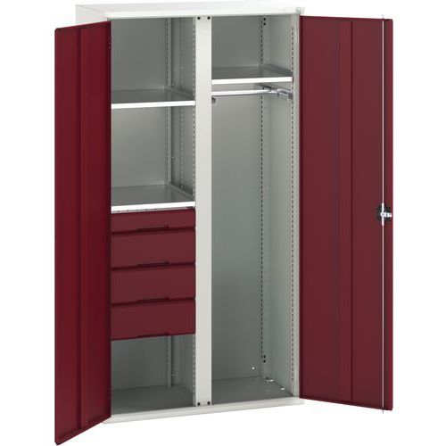 Kovová skříň pro údržbu Bott Verso, 200 x 105 x 55 cm, 3 police, 4 zásuvky, šedá-červená Kovová skříň pro údržbu Bott Verso, 200 x 105 x 55 cm, 3 police, 4 zásuvky, šedá-červená