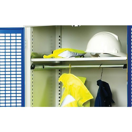 Kovové skříně pro specifické použití v provozech - podle typu vybaveny policemi, zásuvkami, středovou přepážkou nebo i tyčí na ramínka. Pozinkované police s nosnsostí 75 kg, výškově nastavitelné v rastru 25 mm. Zásuvky s nosností 75 kg a 100% výsuvem na válečkových ložiskách. Svařovaná ocelová konstrukce, povrchová úprava práškovým lakem. Vyztužené křídlové dveře s tříbodovým cylindrickým rozvorovým zámkem se dvěma klíči. Bezpečnostní pokyny: - nábytek instalujte na rovnou plochu - upevněte jej na stěnu nebo příčku vhodným upevněním - dbejte na to, abyste nepřekročili maximální doporučené zatížení a také na jeho dobré rozložení Max. zatížení police (kg) : 75 kg Max. zatížení (kg) : 1000 kg