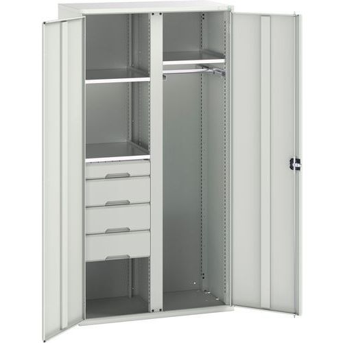 Kovová skříň pro údržbu Bott Verso, 200 x 105 x 55 cm, 3 police, 4 zásuvky, šedá-šedá Kovová skříň pro údržbu Bott Verso, 200 x 105 x 55 cm, 3 police, 4 zásuvky, šedá-šedá