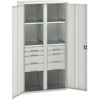Kovová skříň pro údržbu Bott Verso, 200 x 105 x 55 cm, 4 police, 8 zásuvky, šedá-šedá