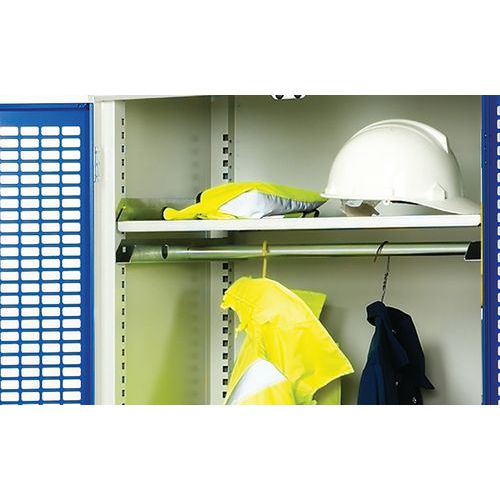 - Kovové skříně pro specifické použití v provozech - podle typu vybaveny policemi, zásuvkami, středová přepážka nebo i tyčí na ramínka.