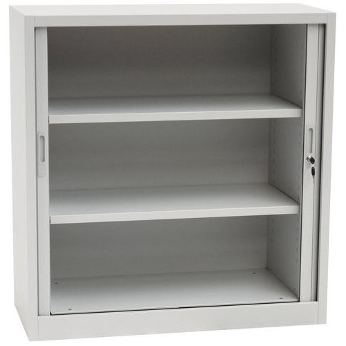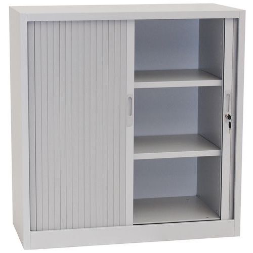 Kovová spisová skříň s roletou, 2 police, 105 x 100 x 45,7 cm, šedá