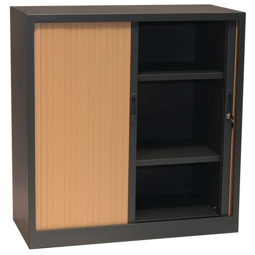 Kovová spisová skříň s roletou Manutan Expert, 2 police, 105 x 100 x 45,7 cm, antracit/buk