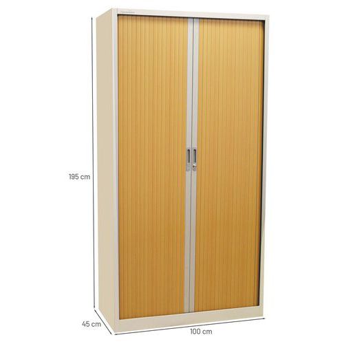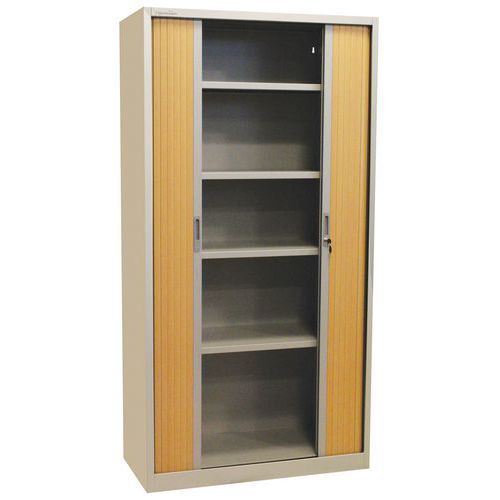 Kovová spisová skříň s roletou Manutan Expert, 4 police, 195 x 100 x 45 cm, šedá/buk