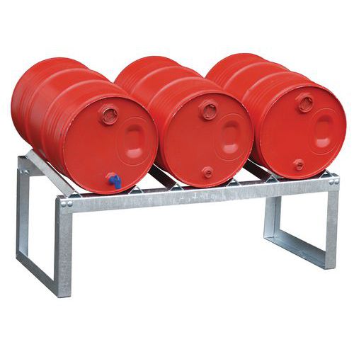 - Kovový regál pro vodorovné skladování 60l sudů.