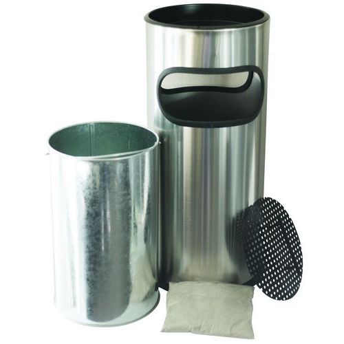 - Kulatý ohnivzdorný odpadkový koš s popelníkem.