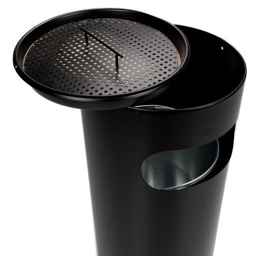 - Kulatý ohnivzdorný odpadkový koš s popelníkem.