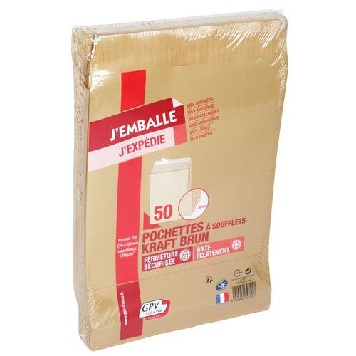 Kraftové papírové obálky, klín 3 cm, 50 ks