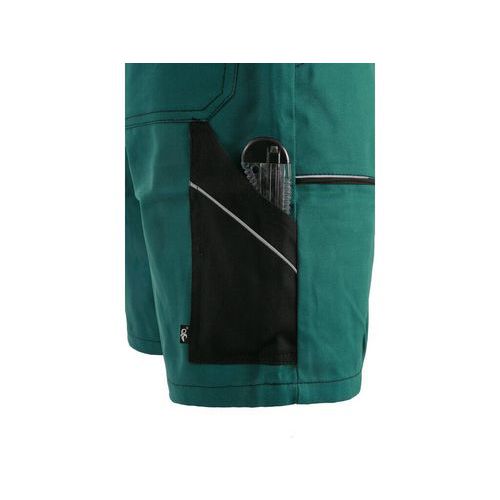 Pánské montérkové kraťasy, pas s poutky na opasek, vzadu do gumy, přední kapsy, boční kapsa na svinovací / skládací metr, boční kapsa na mobil / peněženku, zadní kapsa s klopou. Velikost: 46 - 64 Normy: EN ISO 13688 Montérková kolekce: CXS LUXY Materiálové složení: 100 % bavlna Gramáž: 260 g/m2 Barva: zeleno-černá