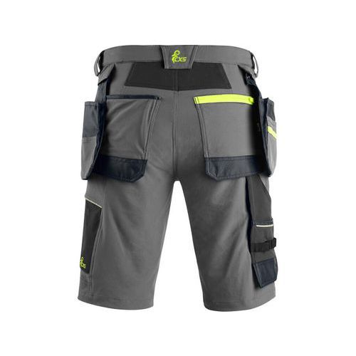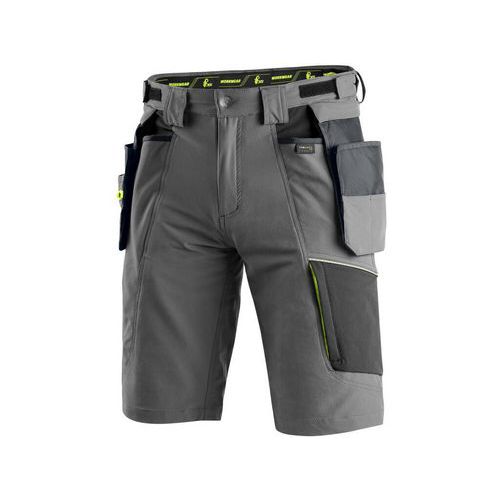 Pánské montérkové kraťasy s kontrastními barevnými a reflexními doplňky. Konstrukce 4-way stretch umožňuje roztahování materiálu ve všech čtyřech směrech a tím i snadný a volný pohyb. Vysoké procento nylonu zaručuje schopnost rychlého schnutí. Vybavení: flexibilní pas s možností upravení velikosti a poutky na opasek, 2 přední kapsy, 2 odnímatelné kapsy na nářadí vyztuženy materiálem CORDURA, kapsa na zip na stehně, multifunkční boční kapsa, 2 zadní kapsy ve spodní části vyztuženy materiálem CORDURA. Doporučené použití: letní pracovní oděv, strojírenství, stavebnictví, lehký průmysl, automobilový průmysl, logistika, skladování, spedice, autoservisy, údržba, montáže, zemědělství, zahrada, hobby a volný čas. Velikost: 46-64 Reflexní doplňky: Ano OEKO-TEX® STANDARD 100: Ano