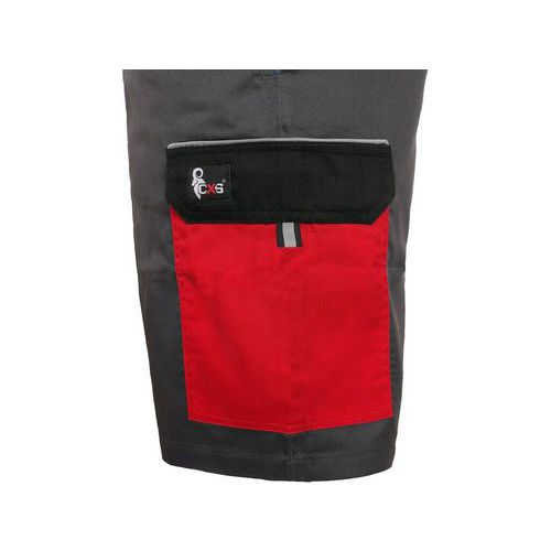Pánské montérkové kraťasy, pas s poutky na opasek, přední klínové kapsy, boční kapsa s klopou, kapsa na skládací/ svinovací metr, zadní jednoduchá kapsa na pravé straně. Velikost: 46 - 64 Normy: EN ISO 13688 Montérková kolekce: CXS PHOENIX Materiálové složení: 65 % polyester 35 % bavlna Gramáž: 190 g/m2 Barva: šedo-červená