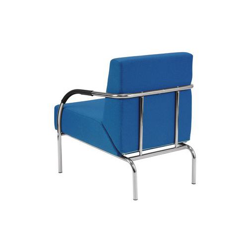 - Čalouněná konferenční křesla s vyztuženým sedákem, opěrákem a chromovanou konstrukcí. Područky jsou opatřeny černou koženkou.