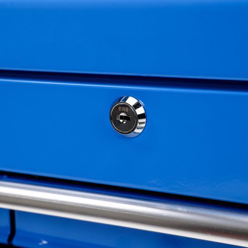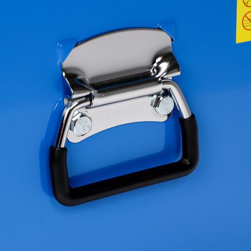 - Kovový kufr se šesti zásuvkami a polstrovanými držadly na každé straně.
